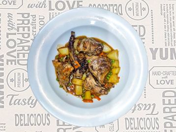 Rabbit, Onion, Garlic, Tomato, Herbs, Peas