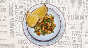 Cozze, Vongole, Clamari, Prawns, Tomatoes, Garlic, Peas, Mushrooms, prawn bisque
